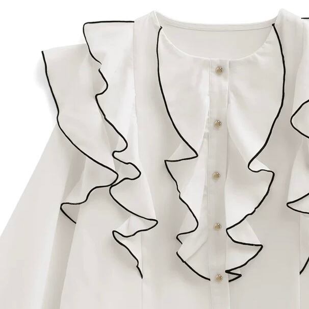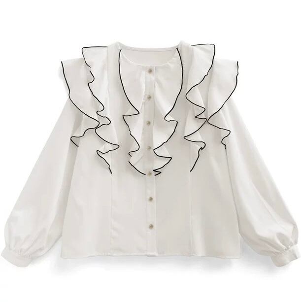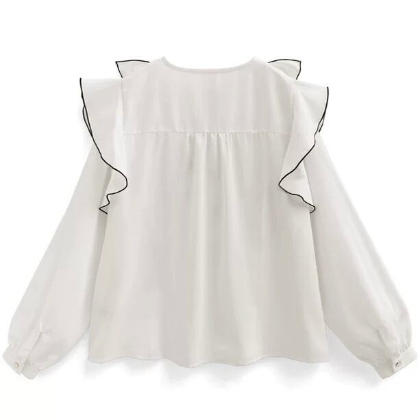 BL-0144 フリル ホワイト 長袖 ブラウス レディース カジュアル シンプル 可愛い お洒落 きれいめ 大人