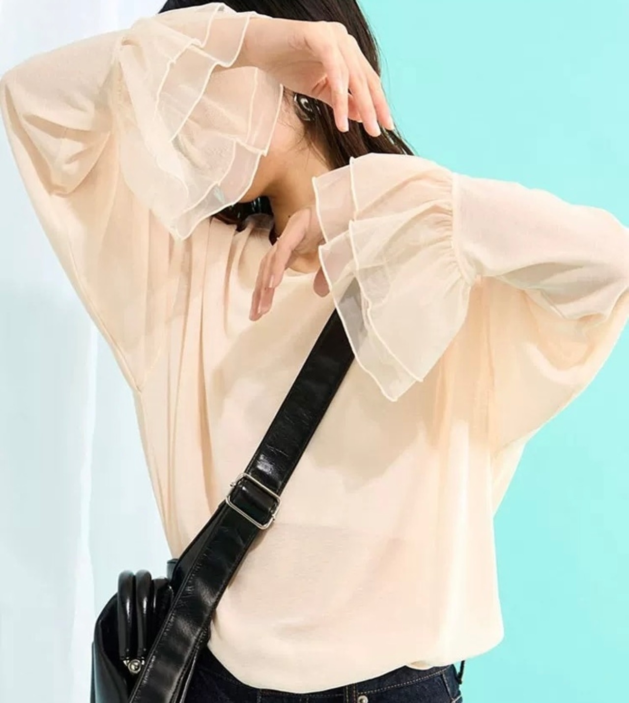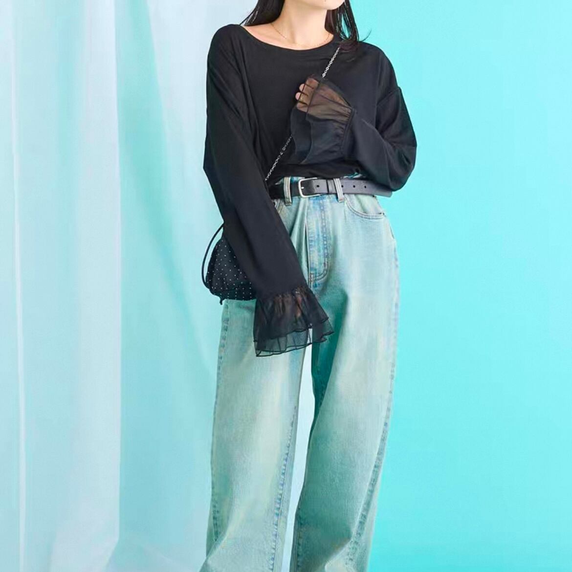 TS-0268 フレア袖 カジュアル 長袖 トップス レディース カジュアル シンプル 可愛い お洒落 きれいめ 大人