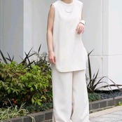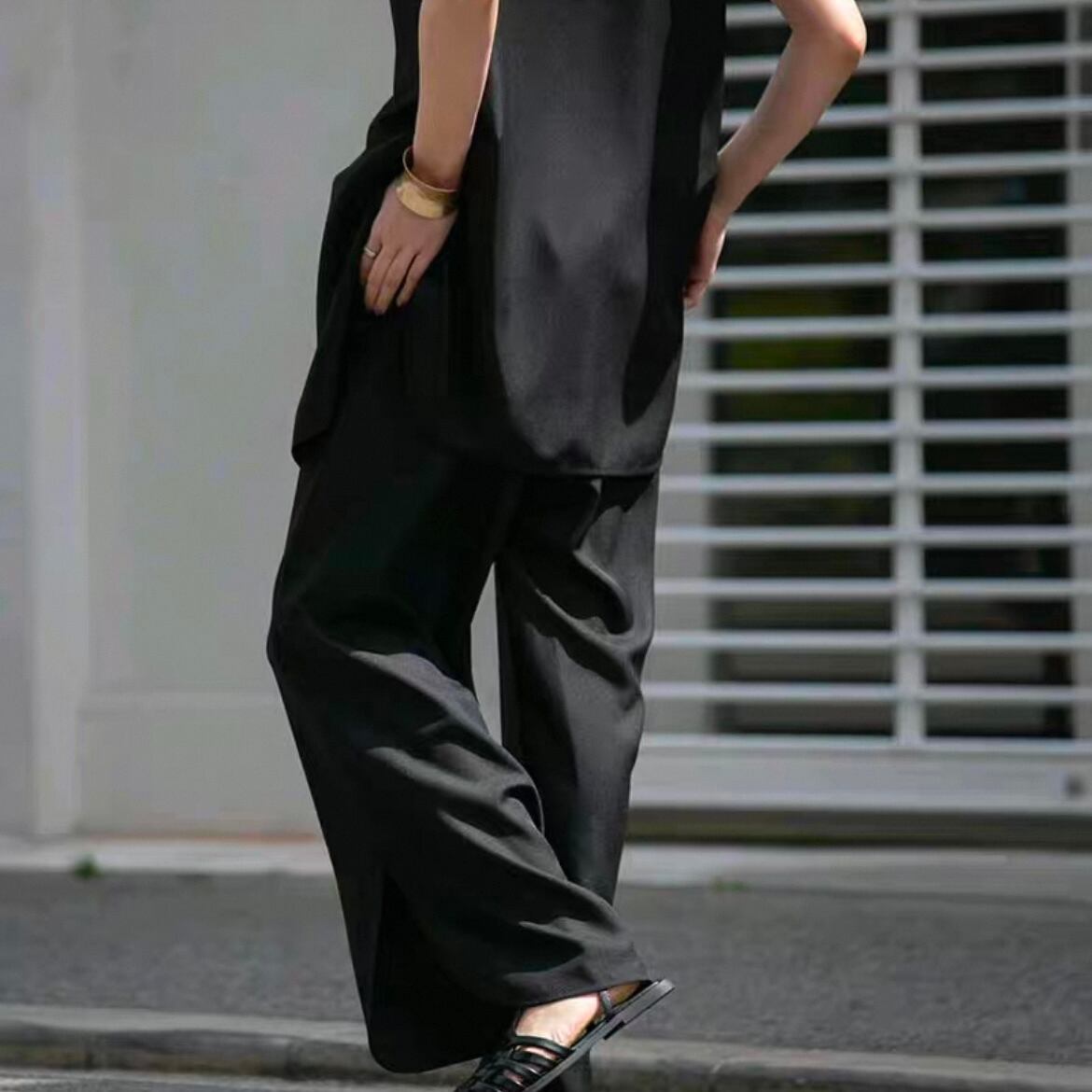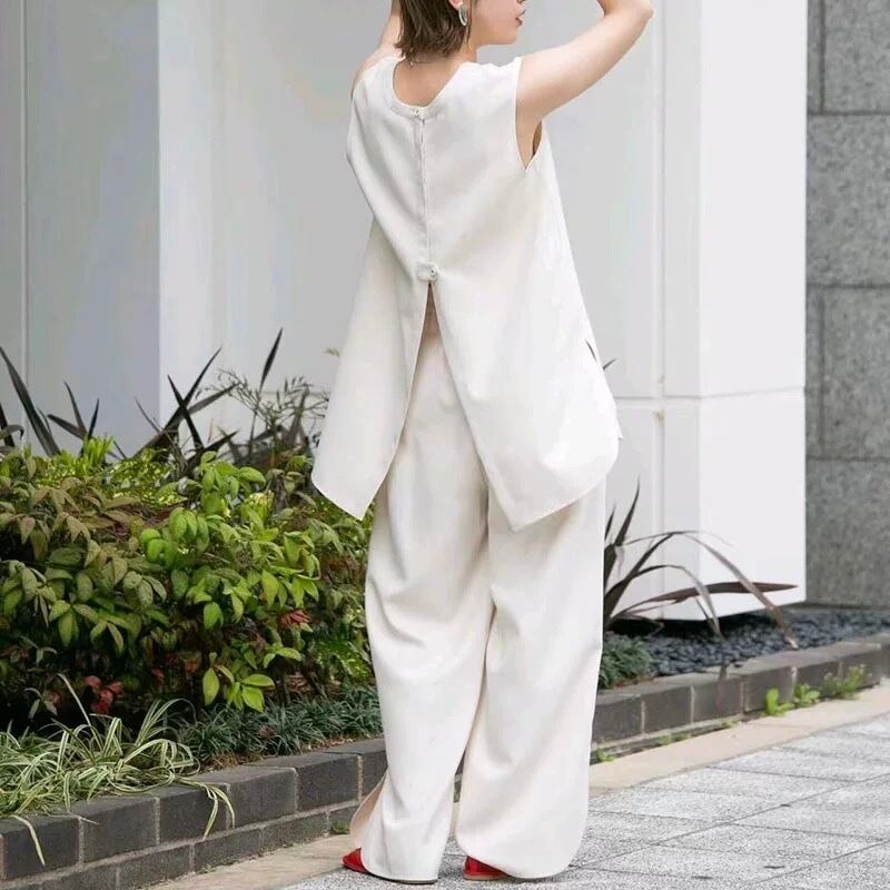 SU-0021 ノースリーブ スリット トップス ワイドパンツ セットアップ ロング丈 クール レディース カジュアル シンプル 可愛い お洒落 きれいめ 大人