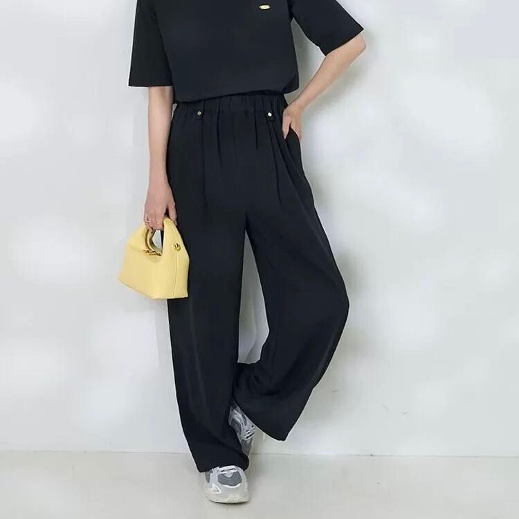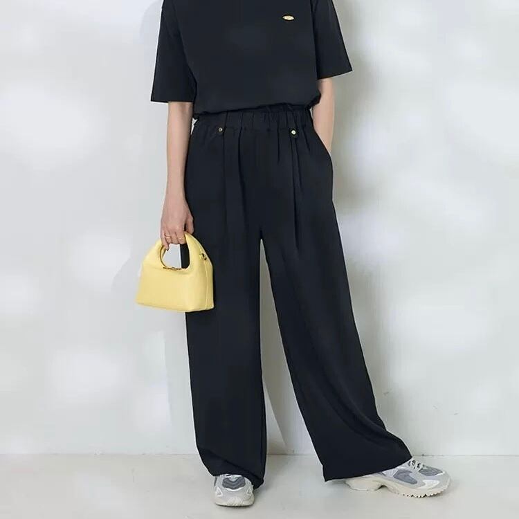 PT-0108 ワイド ハイウエスト スラックス パンツ ロング丈 レディース カジュアル シンプル 可愛い お洒落 きれいめ 大人