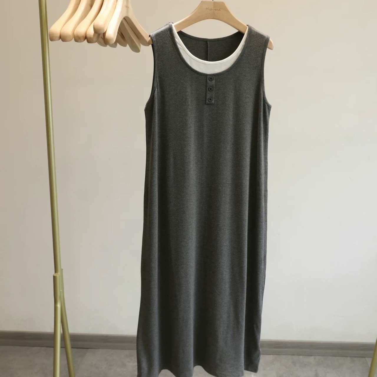 OP-0225 ノースリーブ バイカラー ロング丈 ワンピース レディース カジュアル シンプル 可愛い お洒落 きれいめ 大人