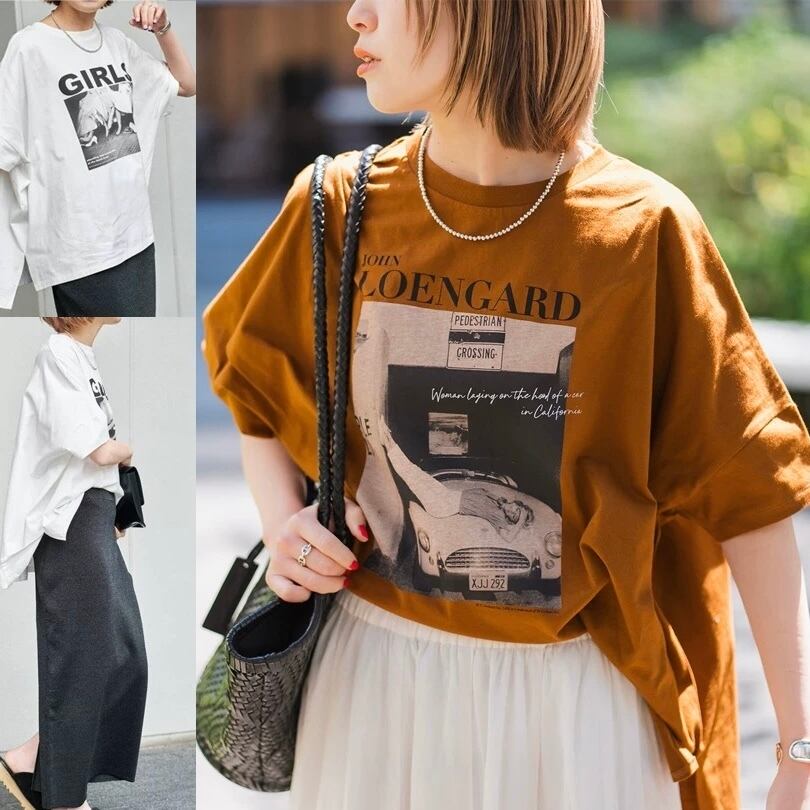 TS-0306 フォト プリント Tシャツ 半袖 カジュアル トップス レディース カジュアル シンプル 可愛い お洒落 きれいめ 大人