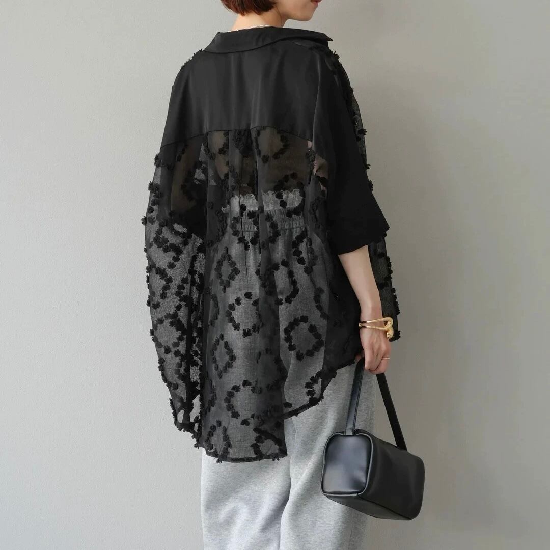 BL-0164 シースルー 柄 ルーズ カジュアル トップス レディース カジュアル シンプル 可愛い お洒落 きれいめ 大人