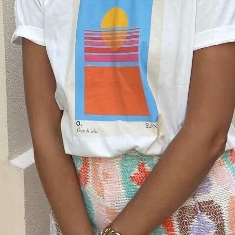 TS-0333 スペイン 太陽 プリント 半袖 Tシャツ トップス レディース カジュアル シンプル 可愛い お洒落 きれいめ 大人