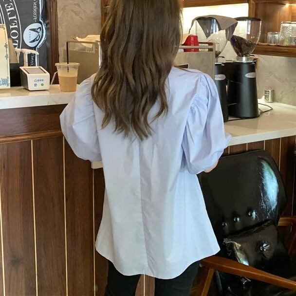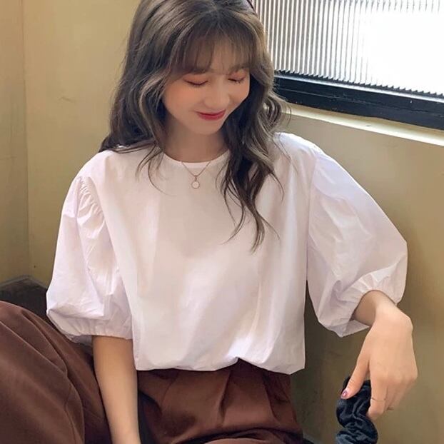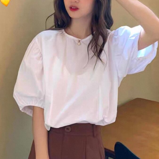 TS-0339 ふんわり袖 無地 半袖 トップス レディース カジュアル シンプル 可愛い お洒落 きれいめ 大人