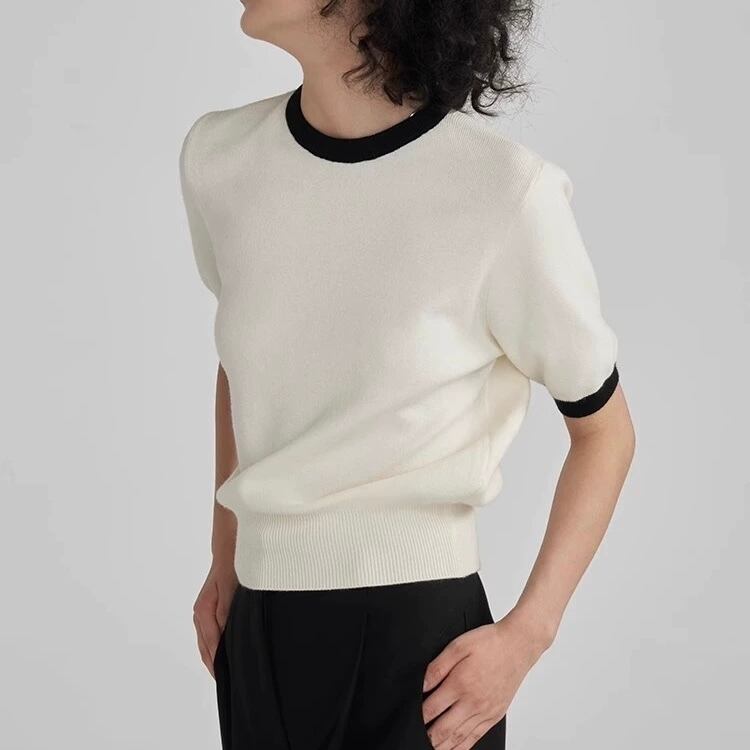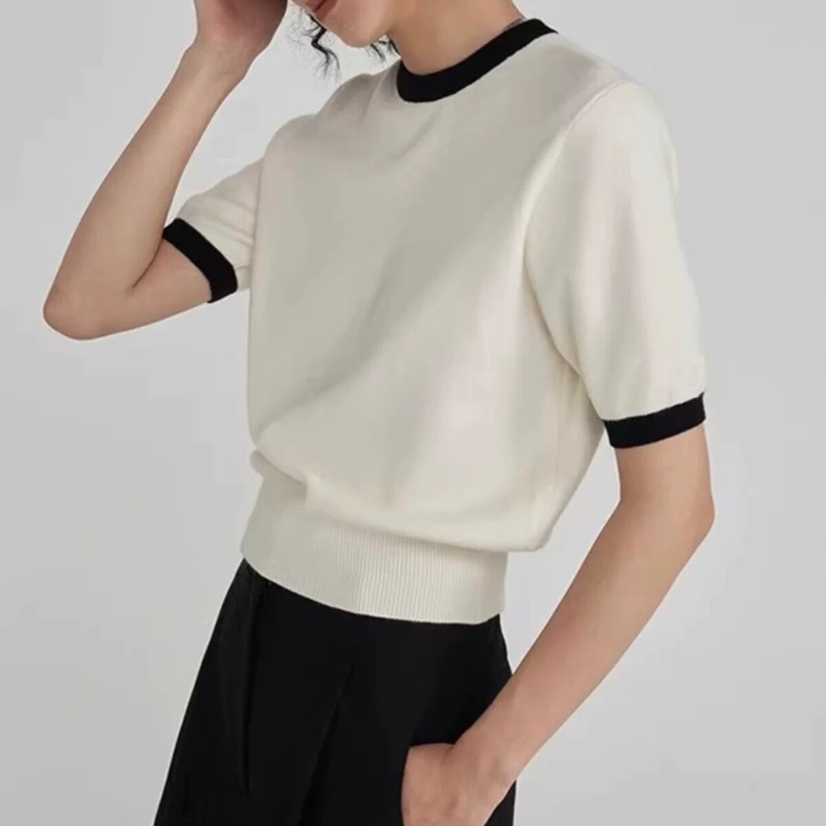NT-0366 バイカラー サマーニット ニット 半袖 トップス レディース カジュアル シンプル 可愛い お洒落 きれいめ 大人