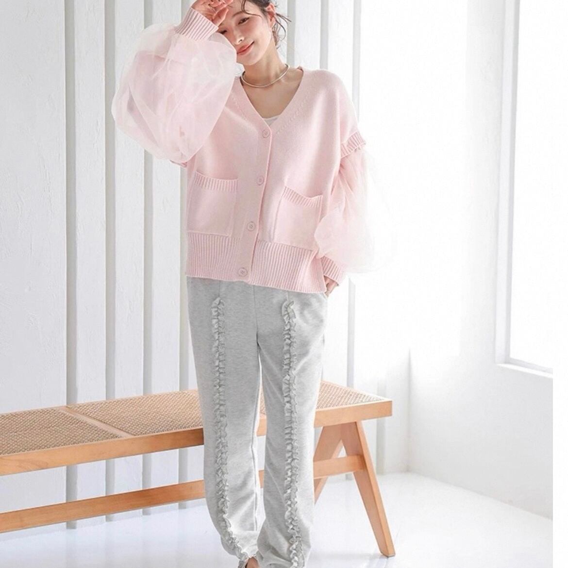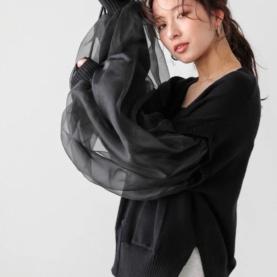 ▫️チュール袖ニットカーディガン