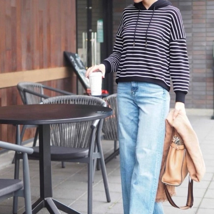 NT-0369 ストライプ パーカー フード ニット 長袖 上品 トップス レディース カジュアル シンプル 可愛い お洒落 きれいめ 大人