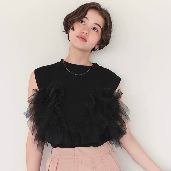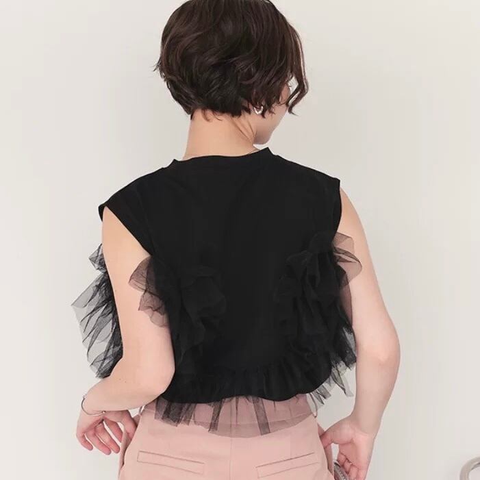 TS-0354 ノースリーブ チュール 上品 トップス レディース カジュアル シンプル 可愛い お洒落 きれいめ 大人