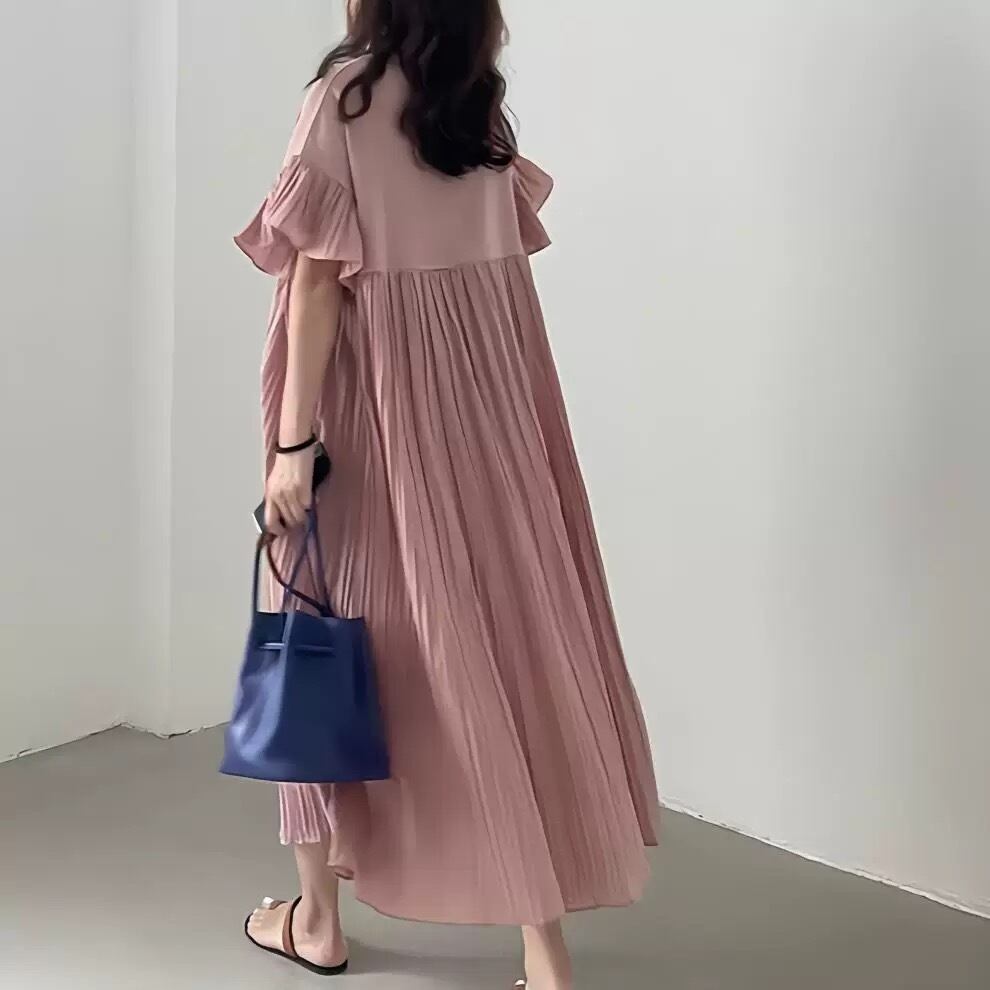 OP-0230 半袖 プリーツ ロング丈 ワンピース レディース カジュアル シンプル 可愛い お洒落 きれいめ 大人