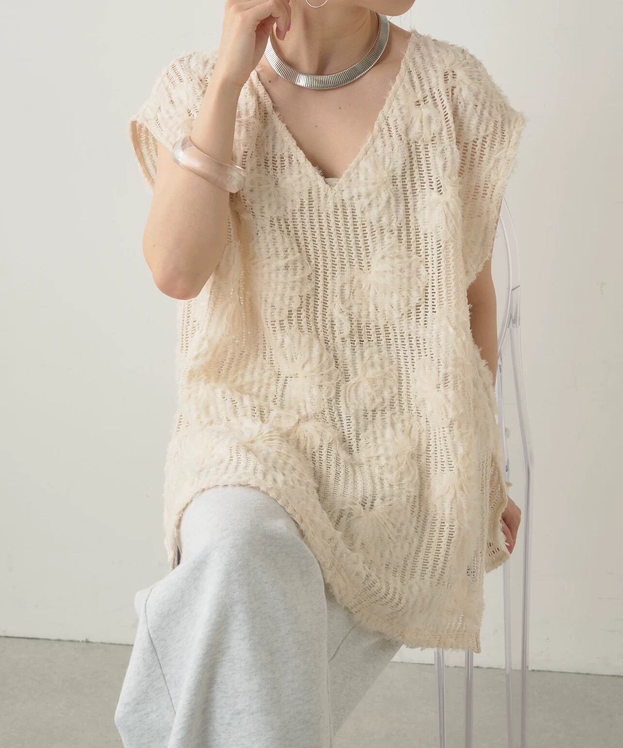 TS-0367 花 メッシュ ニット トップス レディース カジュアル シンプル 可愛い お洒落 きれいめ 大人