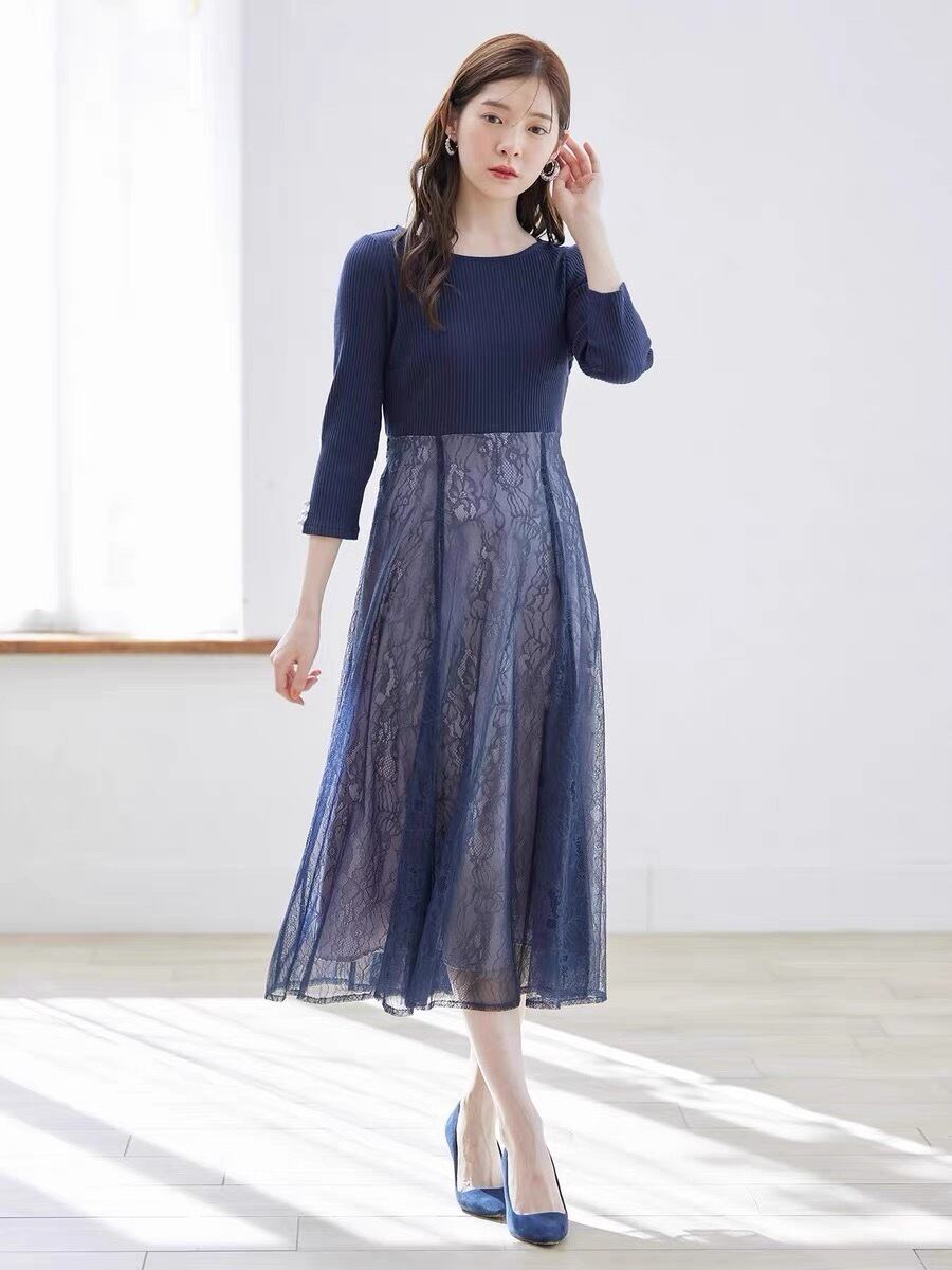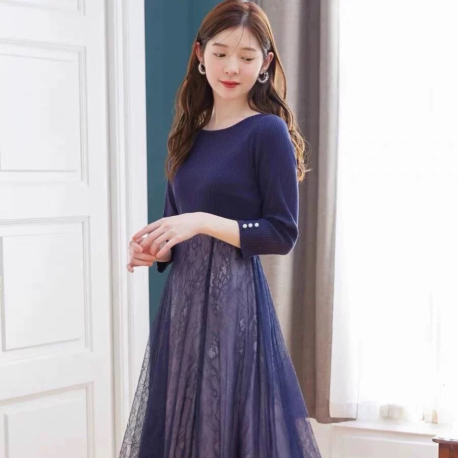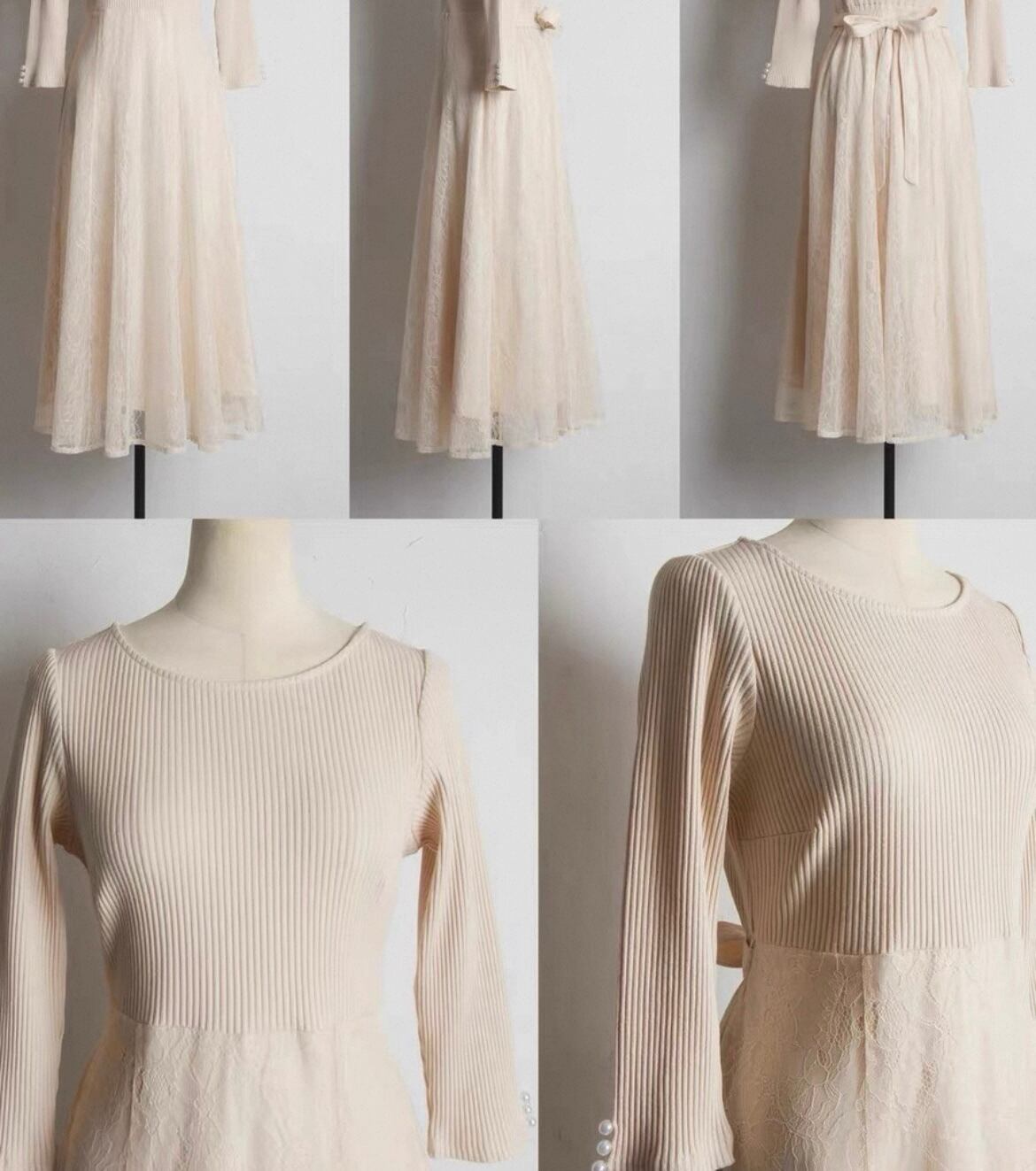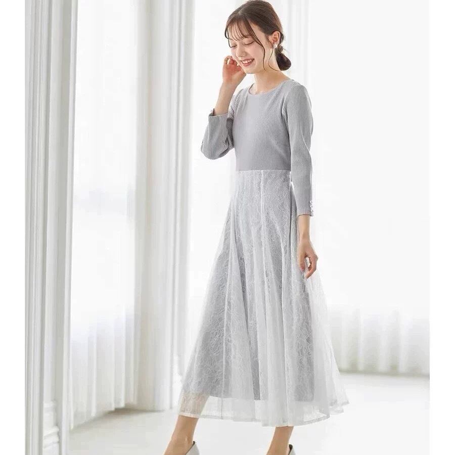 OP-0232 リブニット ハイウエスト 長袖 ロング丈 フレア ワンピース レディース カジュアル シンプル 可愛い お洒落 きれいめ 大人