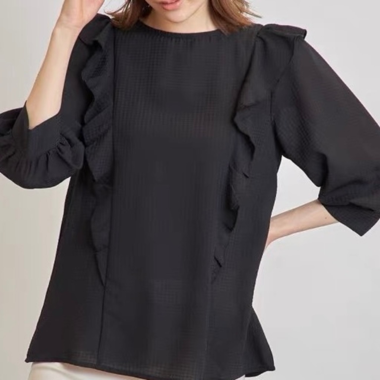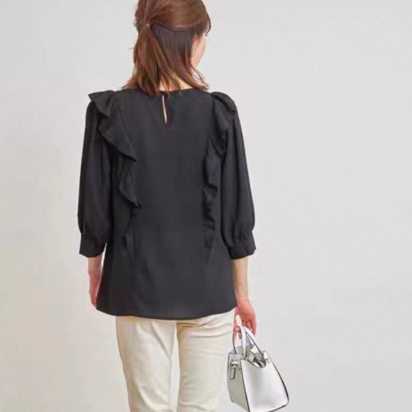 BL-0171 フリル 7分丈 ラウンドネック ガーリー ブラウス 上品 トップス レディース カジュアル シンプル 可愛い お洒落 きれいめ 大人
