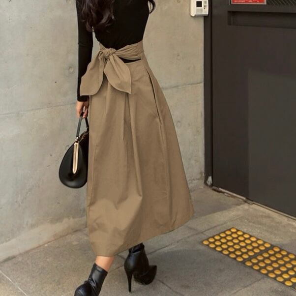 SK-0085 膝下丈 フレア ハイウエスト リボン フレア スカート レディース カジュアル シンプル 可愛い お洒落 きれいめ 大人