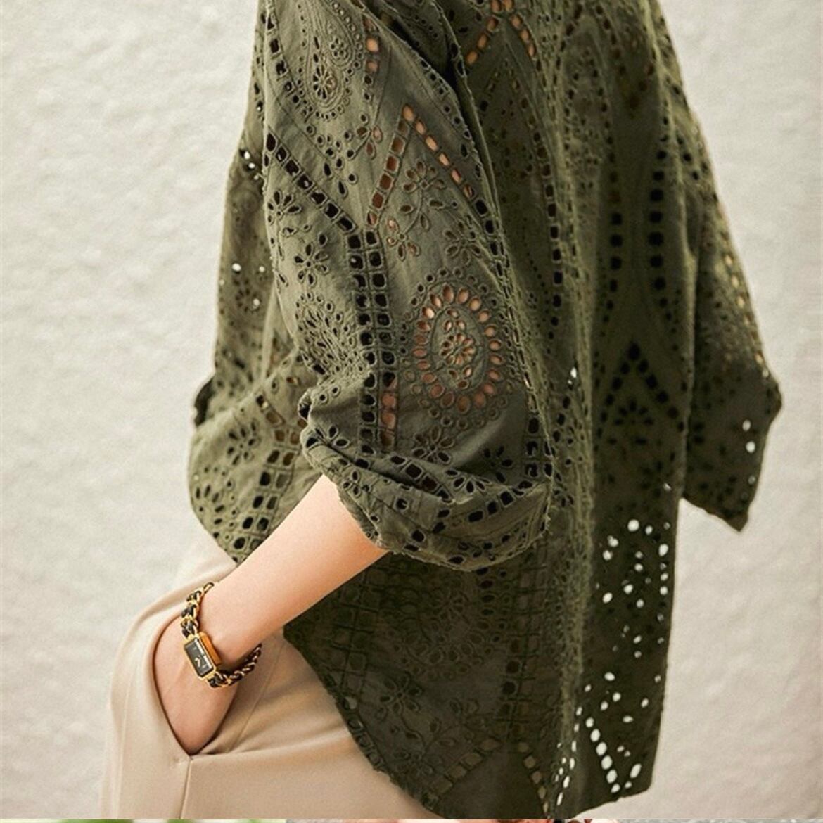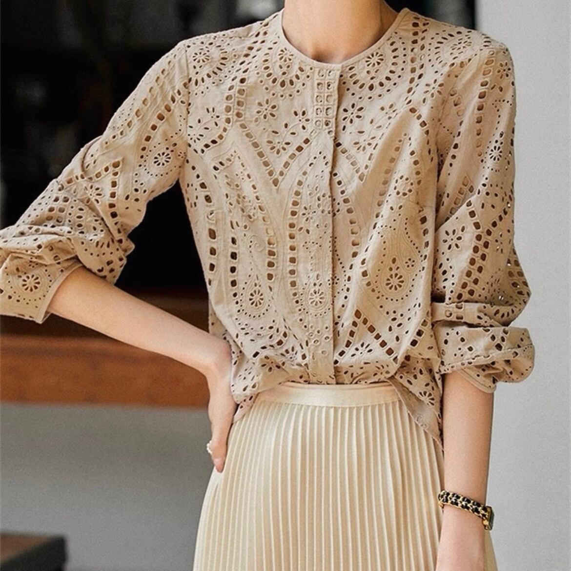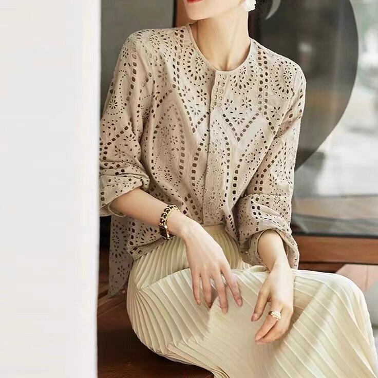 TS-0370 パンチングレース 長袖 トップス レディース カジュアル シンプル 可愛い お洒落 きれいめ 大人