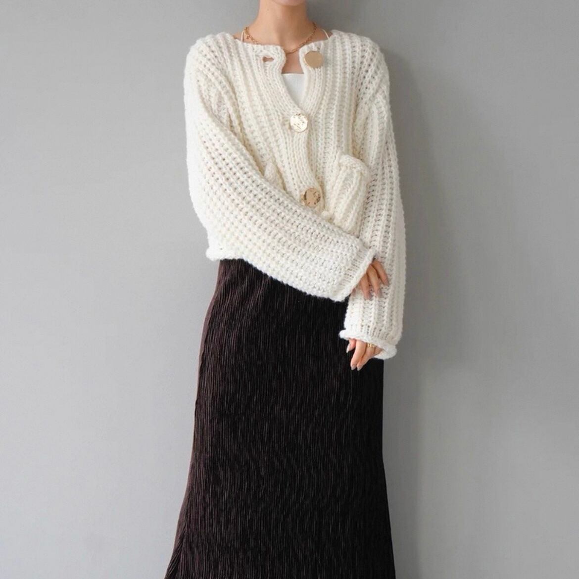 NT-0370 メタルプレートボタン ルーズ ニット カーディガン 長袖 トップス レディース カジュアル シンプル 可愛い お洒落 きれいめ 大人