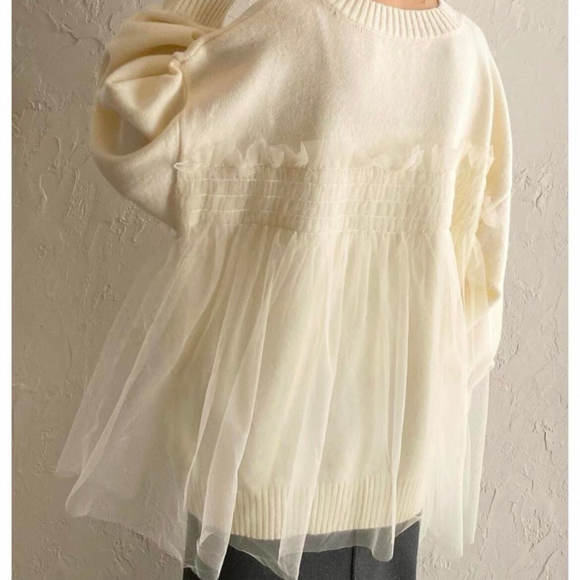 NT-0371 チュール ドッキング ビスチェ風 ニット 長袖 トップス レディース カジュアル シンプル 可愛い お洒落 きれいめ 大人