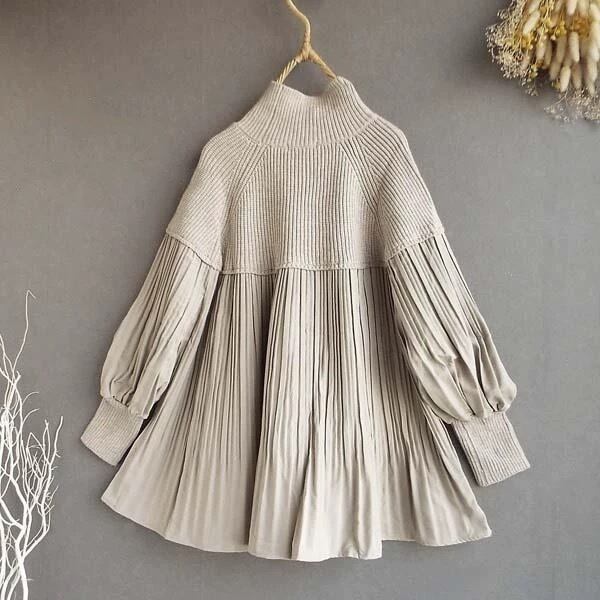 NT-0372 ハイネック プリーツ ニット 長袖 トップス レディース カジュアル シンプル 可愛い お洒落 きれいめ 大人