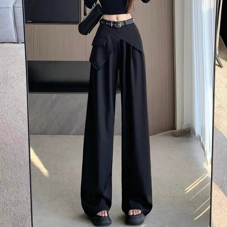 PT-0121 ハイウエスト イレギュラー パンツ レディース カジュアル シンプル 可愛い お洒落 きれいめ 大人