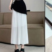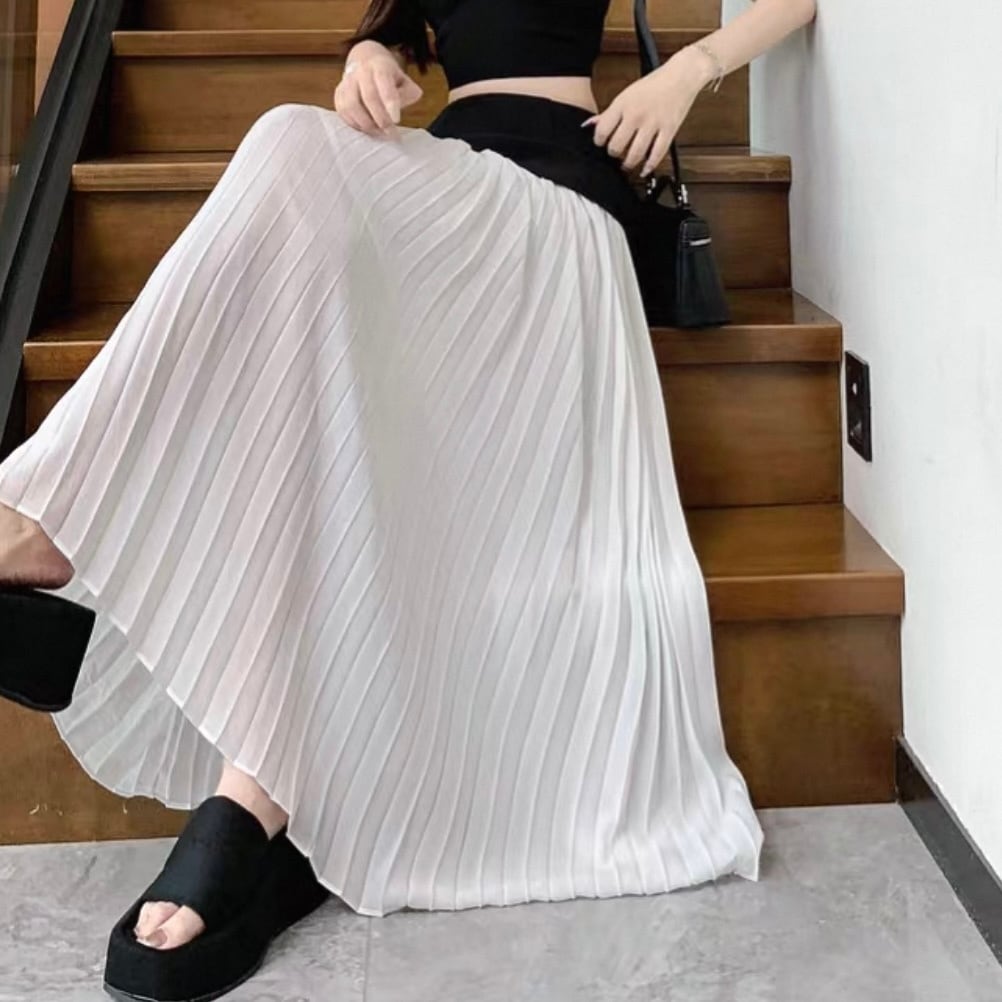SK-0086 ロング丈 プリーツ バイカラー スカート レディース カジュアル シンプル 可愛い お洒落 きれいめ 大人
