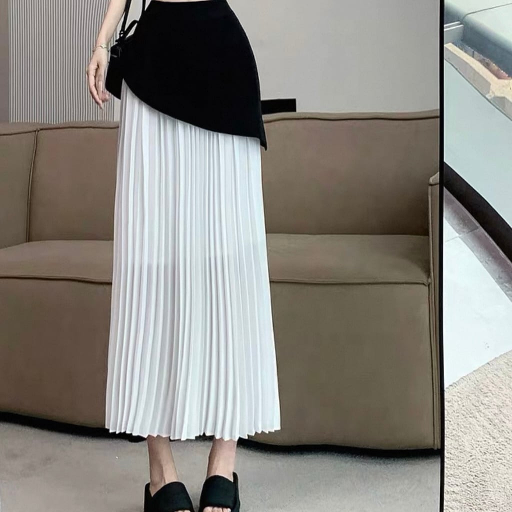▫️バイカラーレイヤードプリーツロングスカート