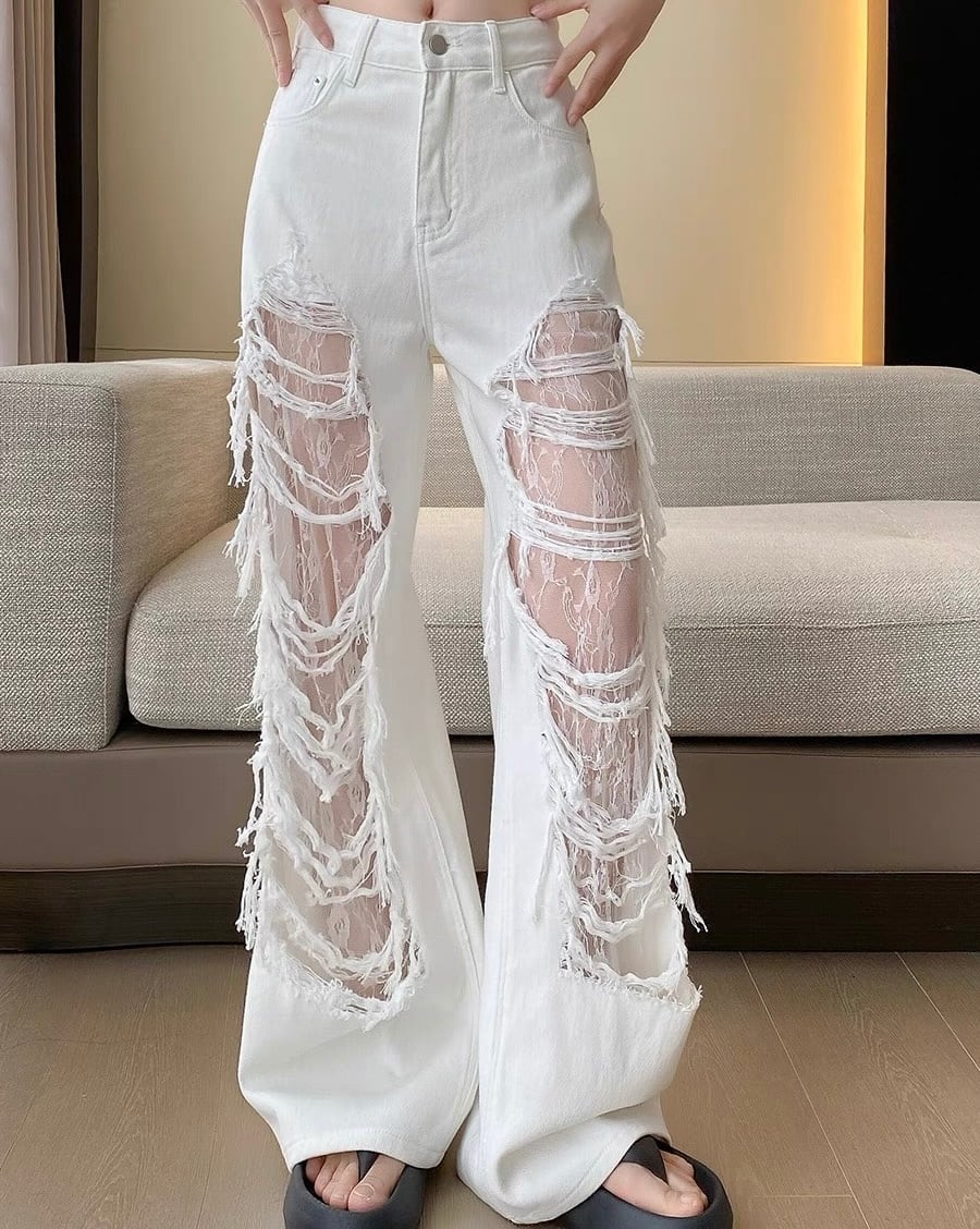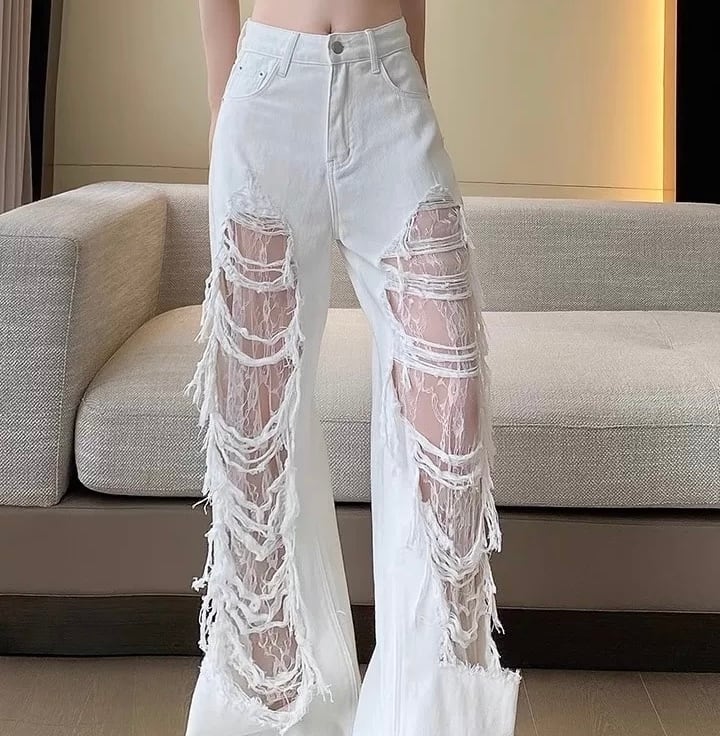 ▫️スーパーダメージレース×デニムホワイトパンツ