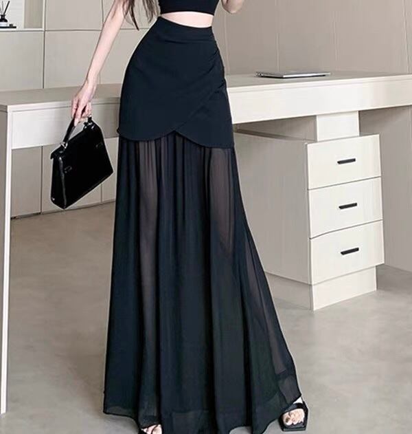SK-0089 シアー クール ロング丈 スカート レディース カジュアル シンプル 可愛い お洒落 きれいめ 大人
