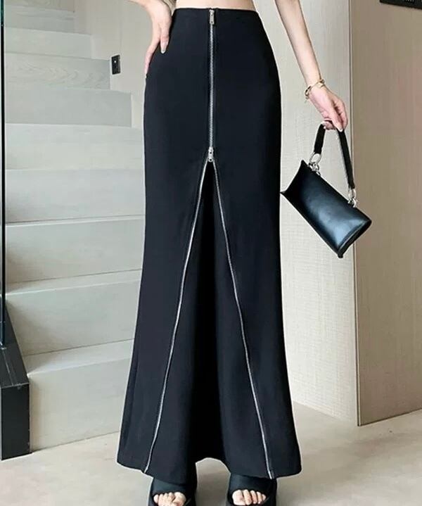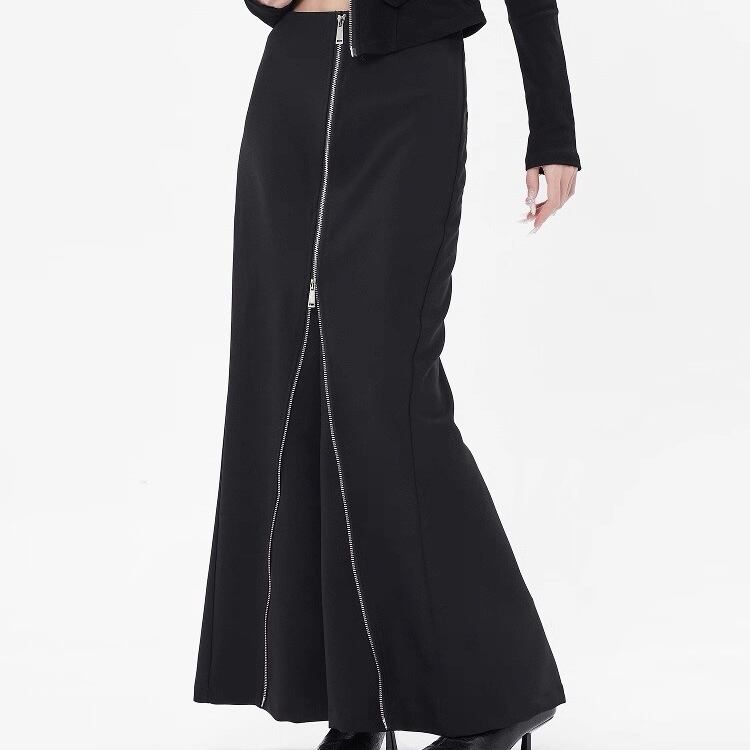 SK-0093 フロントジップ マーメイド ロング丈 スカート レディース カジュアル シンプル 可愛い お洒落 きれいめ 大人