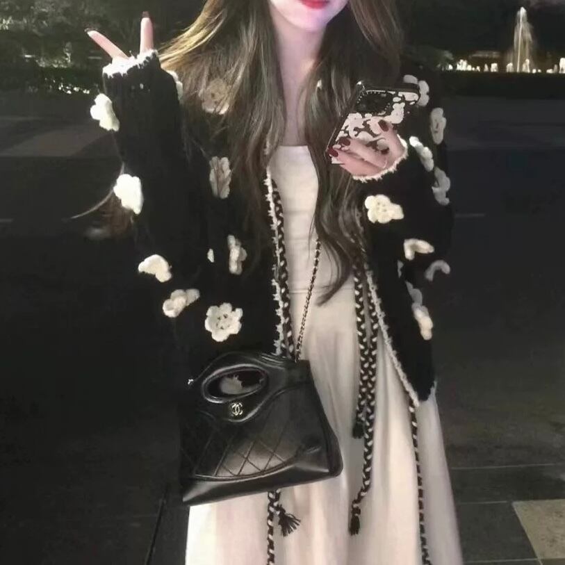 NT-0379 立体 フラワー かぎ針編み カーディガン ニット ゆったり トップス 長袖 レディース カジュアル シンプル 可愛い お洒落 きれいめ 大人