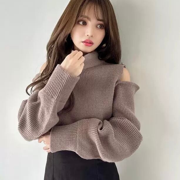 NT-0388 ショルダーオープン ニット ゆったり トップス 長袖 レディース カジュアル シンプル 可愛い お洒落 きれいめ 大人