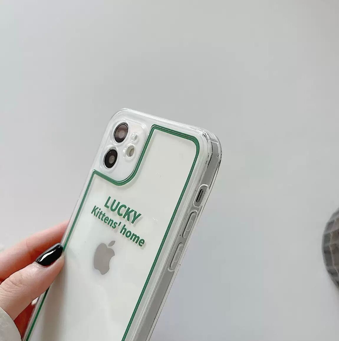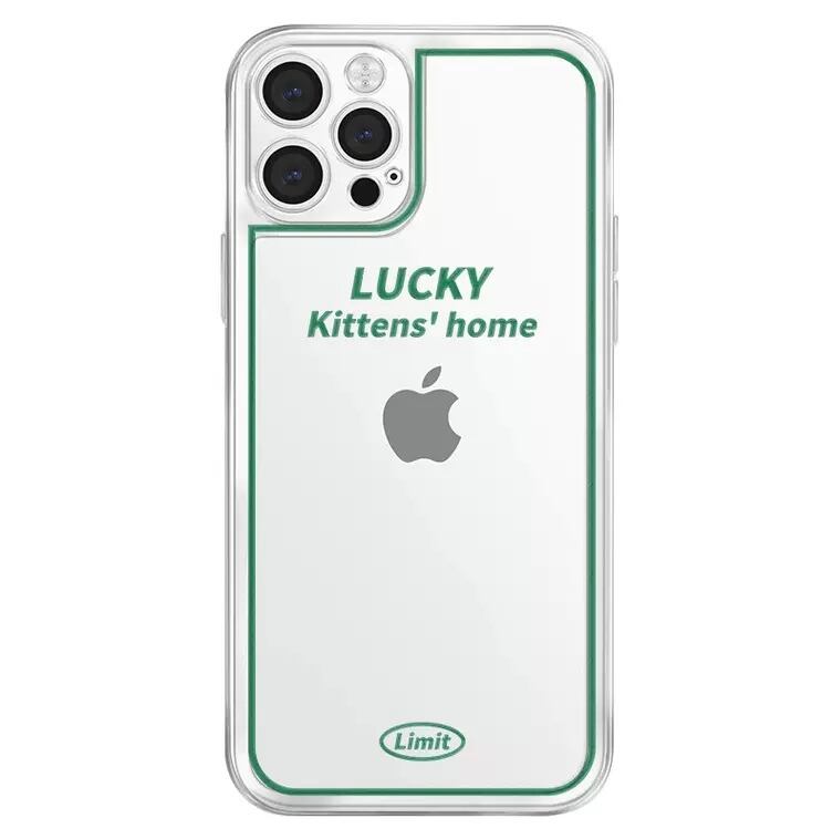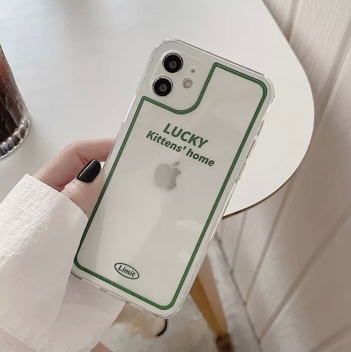 KT-0300 クリア ラッキー グリーン シンプル フレーム シンプル iPhone スマホケース お洒落 キュート 可愛い