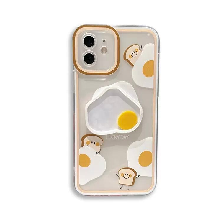KT-0305 トースト キャラクター 目玉焼き 卵黄 ユニーク iPhone スマホケース お洒落 キュート 可愛い