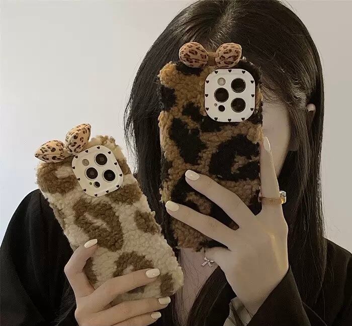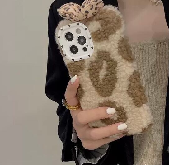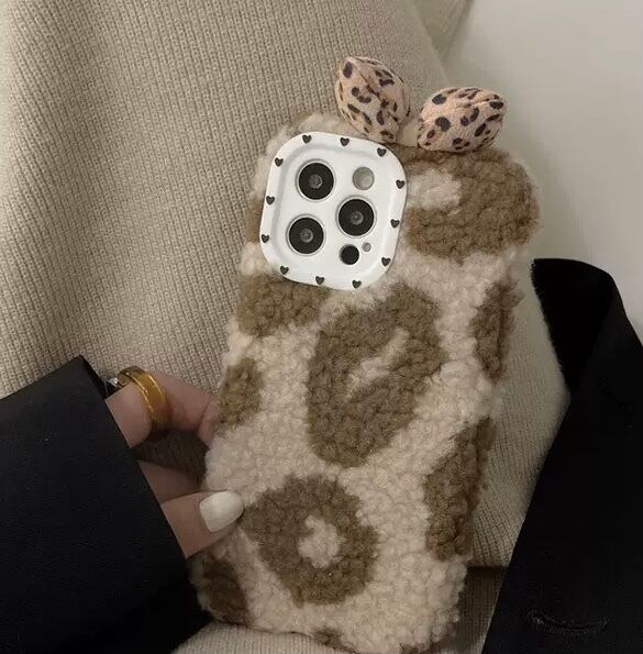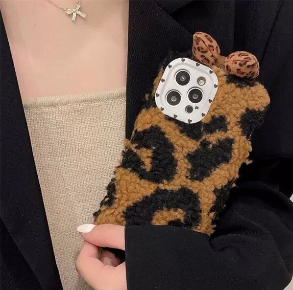 KT-0317 コーヒーカラー ミルク ヒョウ柄 ボア シンプル iPhone スマホケース お洒落 キュート 可愛い