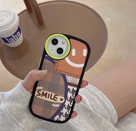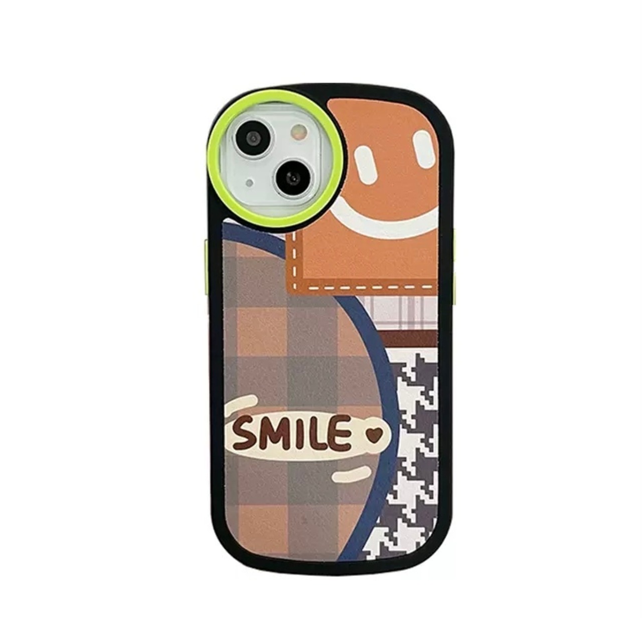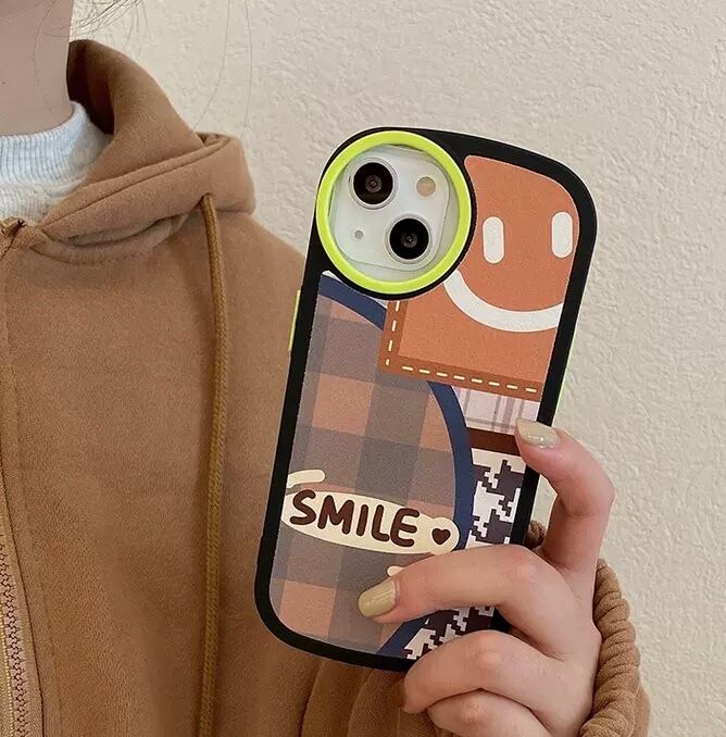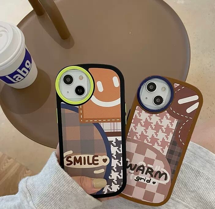 KT-0323 千鳥格子 スマイル イラスト チェック柄 ポップ シンプル iPhone スマホケース お洒落 ユニーク キュート 可愛い
