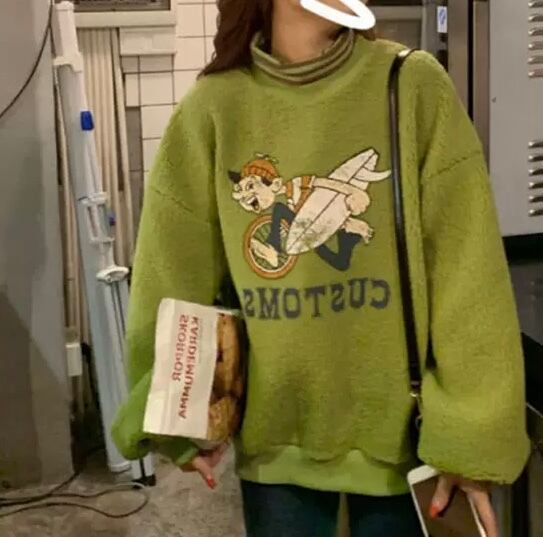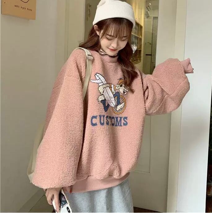 TS-0377 フリース かわいい プリント トレーナー ラウンドネック ラムカシミア 秋冬 ルーズ カジュアル トップス 長袖 お洒落