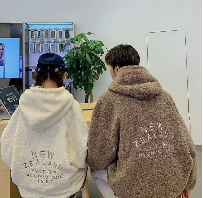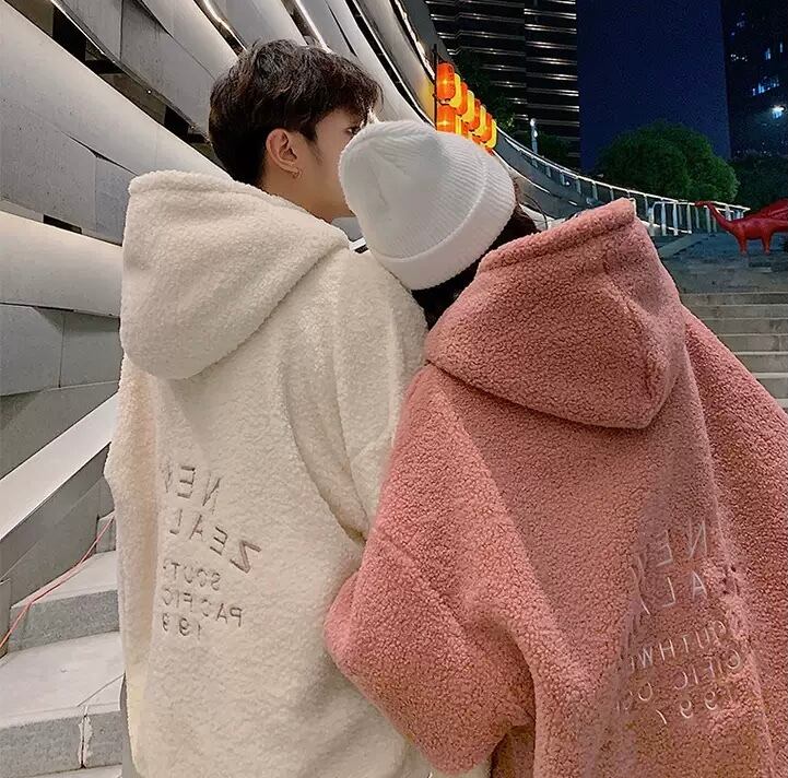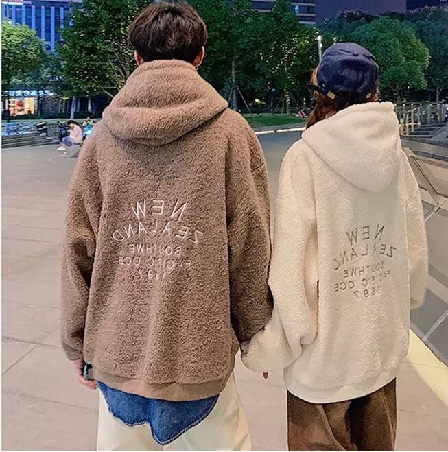 TS-0379 ボア パーカー フード ユニセックス 英字 トレーナー 秋冬 ルーズ 可愛い カジュアル トップス 長袖 お洒落