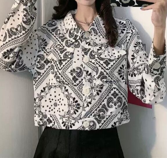 JK-0146 短め丈 ペイズリー柄 ジャケット クール シンプル 可愛い カジュアル 長袖 お洒落 秋冬