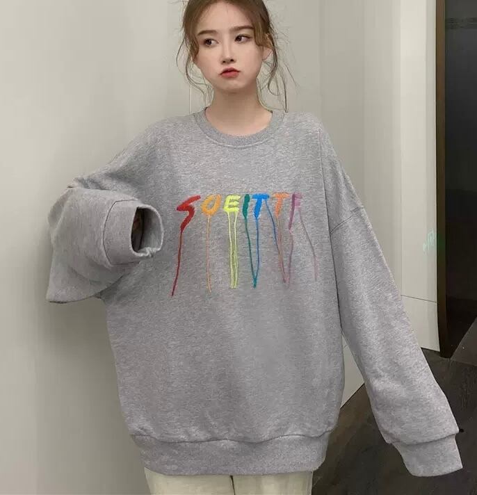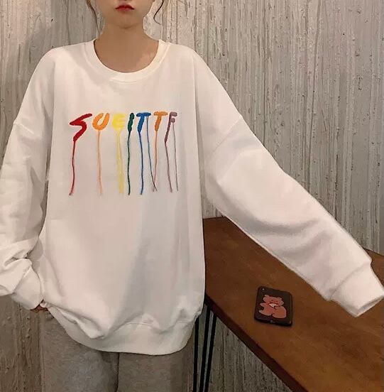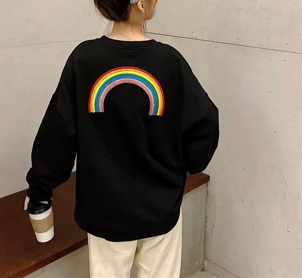 TS-0233 レインボー 刺繍 ラウンドネック トレーナー シンプル 可愛い カジュアル トップス 長袖 お洒落