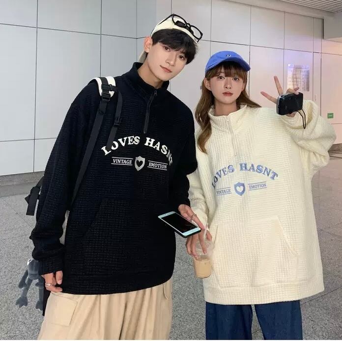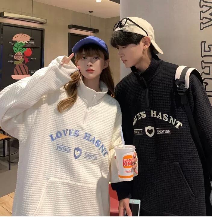 TS-0389 ワッフル トレーナー カップル ユニセックス 英字 シンプル 可愛い カジュアル トップス お洒落
