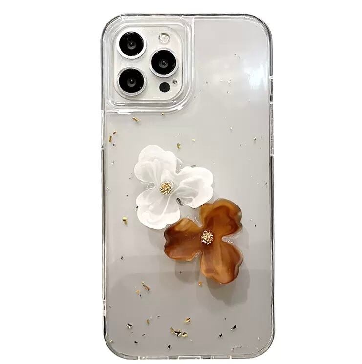 KT-0329 クリア 花 金箔 シンプル iPhone スマホケース お洒落 きれいめ キュート 可愛い