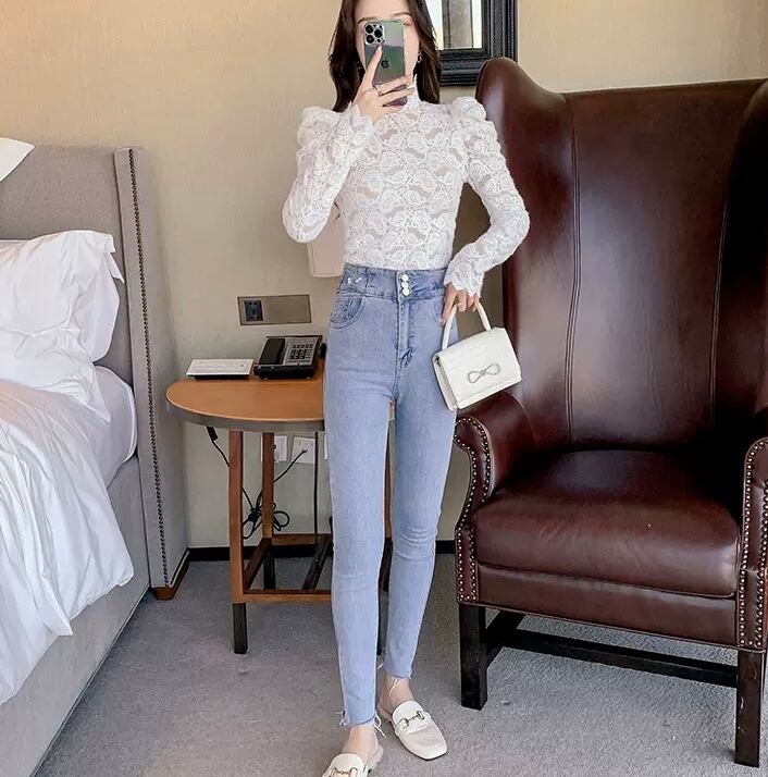 TS-0391 ハイネック ファッション レース きれいめ カラー シンプル 可愛い カジュアル トップス お洒落
