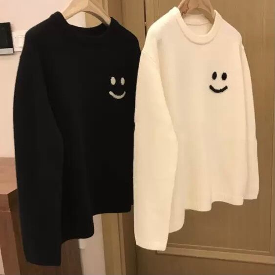 NT-0190 ニコちゃん ラウンドネック セーター レディース ニット 秋冬 可愛い カジュアル トップス 長袖 お洒落