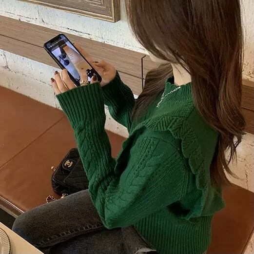 NT-0181 ウール ケーブルステッチ セーター レディース ニット 可愛い カジュアル トップス 長袖 お洒落