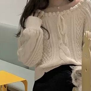 NT-0182 ツイスト ルーズ セーター レディース ニット 可愛い カジュアル トップス 長袖 お洒落