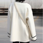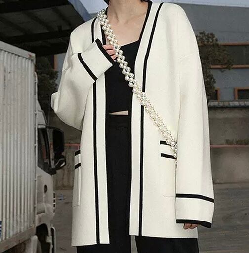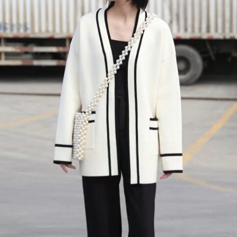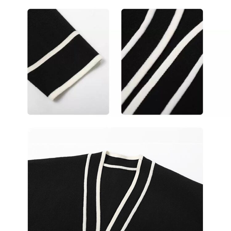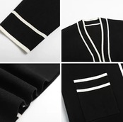JK-0149 コントラストカラー カーディガン ミドル丈 ニット ジャケット 可愛い カジュアル トップス 長袖 お洒落