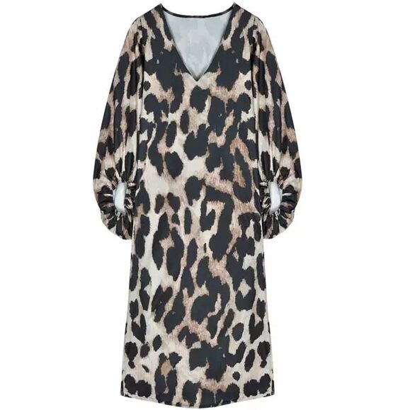▫️Vネックヒョウ柄ロングワンピース