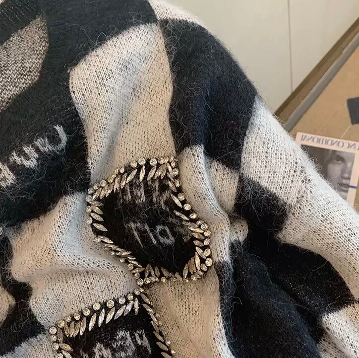 NT-0191 ブロックチェック スマイル ユニーク ラウンドネック ルーズ プルオーバー セーター ニット 可愛い カジュアル トップス 長袖 お洒落