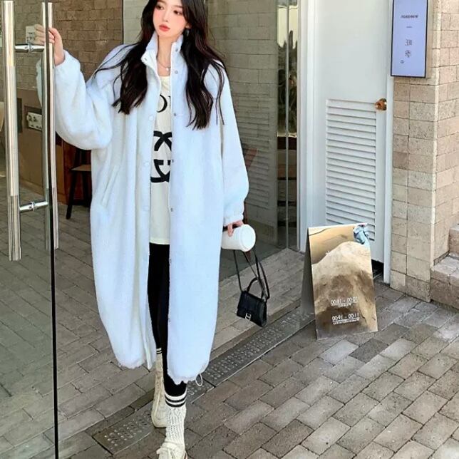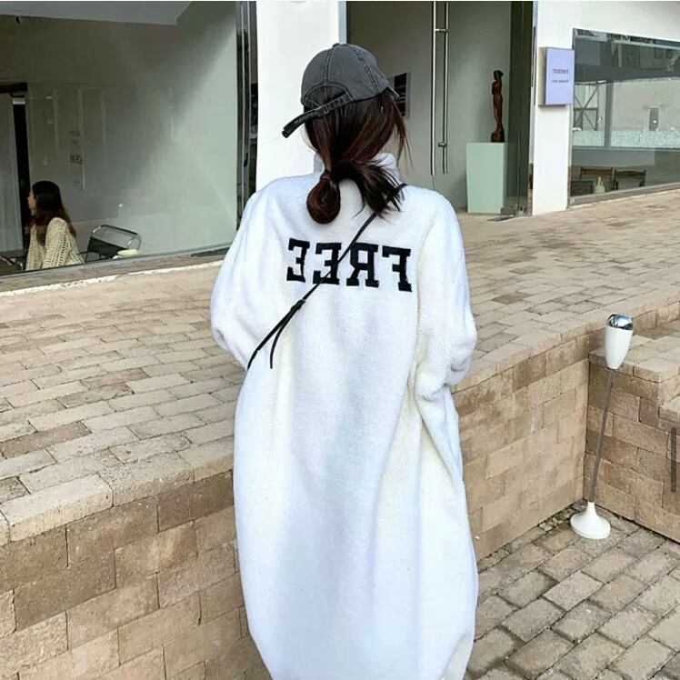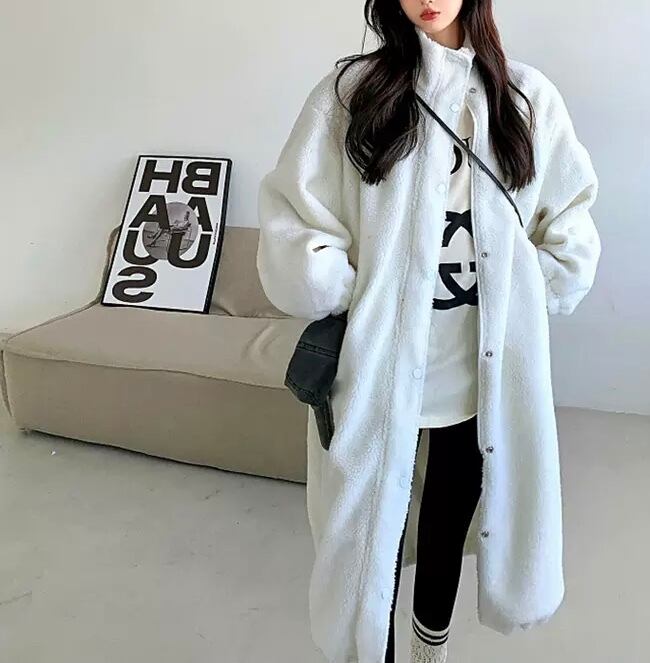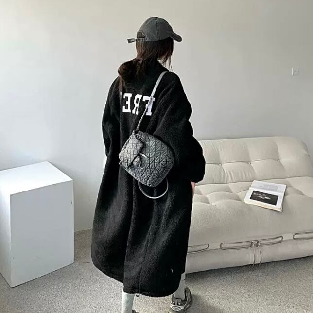 JK-0155 ハイネック ロング丈 ラムウールコート レディース 英字 大人 可愛い カジュアル 長袖 お洒落