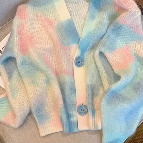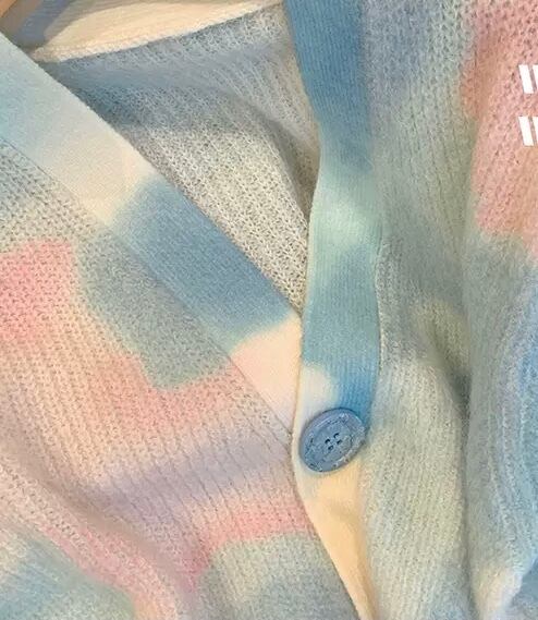 NT-0204 水彩カラー カーディガン カラー セーター ニット 可愛い カジュアル トップス 長袖 お洒落