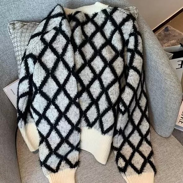 ▫️ダイヤモンドチェック柄×リボンニットカーディガン